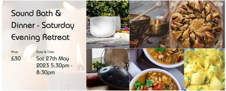 Exclusive Sound Bath Relaxation experience & delicious homemade meal - feed your body and soul in the peaceful Yorkshire countryside.