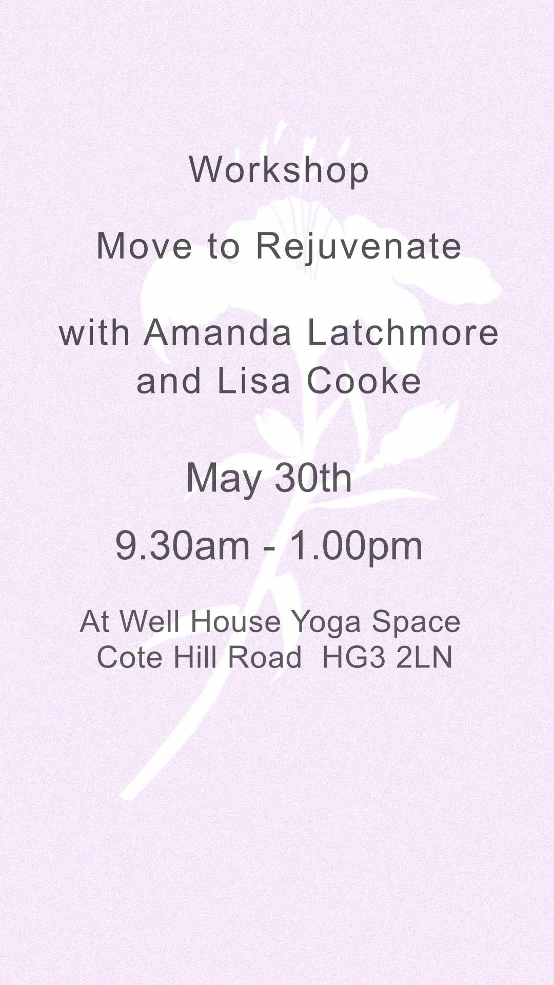 To book or for more information email: amanda@harrogateyoga.com or ring 07742962057